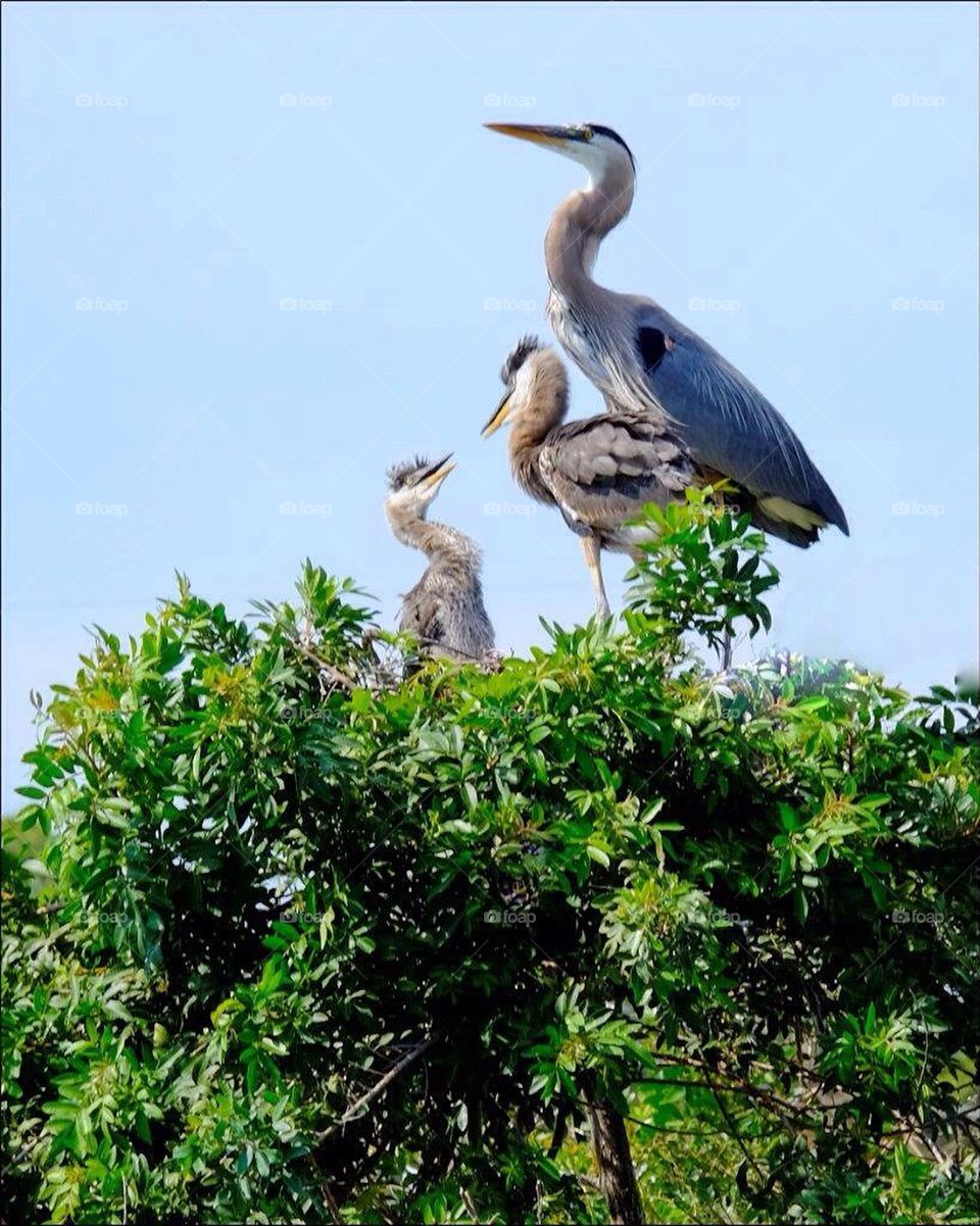heron and babies