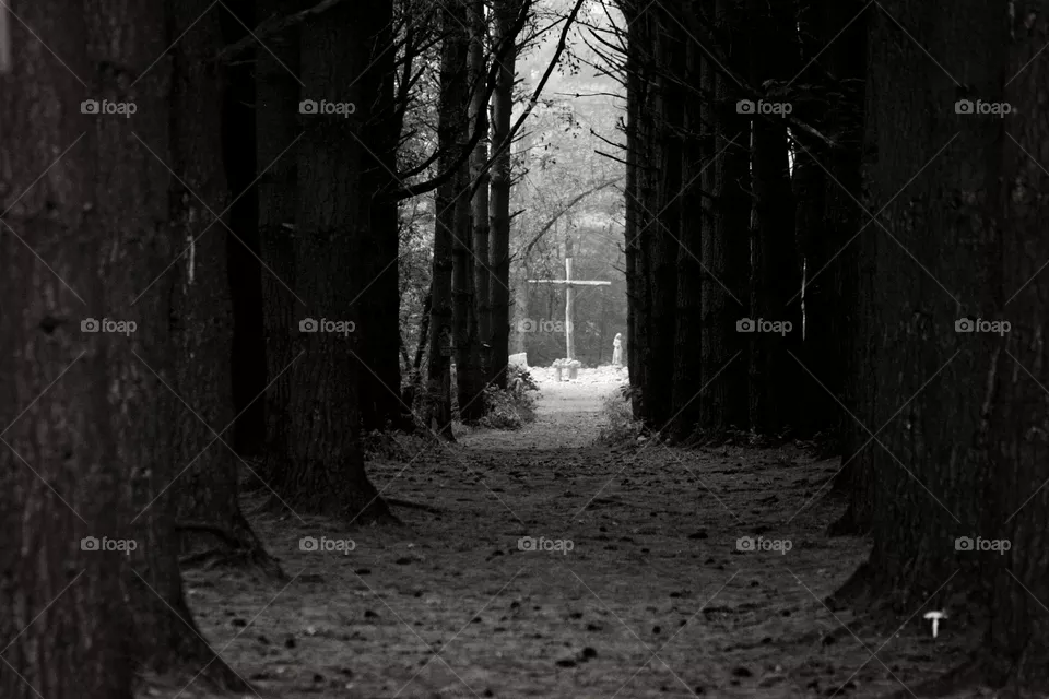Stock photo: Black and white forest with cross was taken by samantha22103 .
