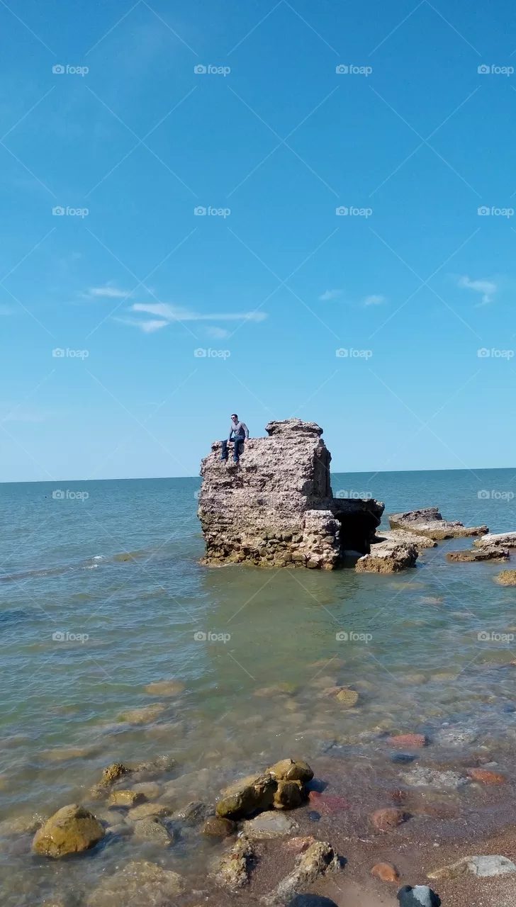 Man sitting on a ruins i the sea