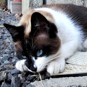 blue eyes kitty admiring a magic garden