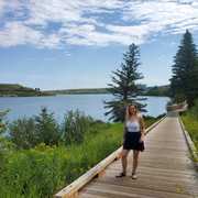 hiking on boardwalk at lake