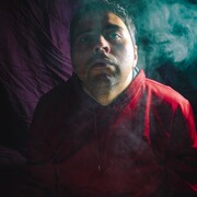 Man sitting in smoky haze