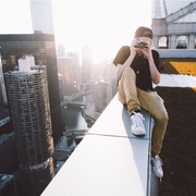 Man sitting on building