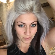 A fun blast of grey hair complimented with an almost black violet peekaboo low lights!
