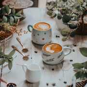 A cup of coffee on the table besides the window. Cafe ambience conceptual stilllife photography