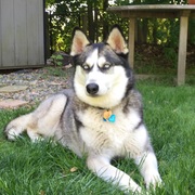 Basket of Husky Puppies. A basket of two week old husky puppies