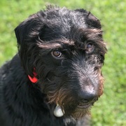 Black Labradoodle brown eyes with eyebrows