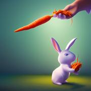 Cute white rabbit loves to eat carrots